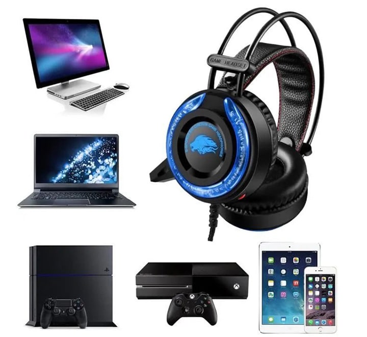 - Contenu : 1 casque de jeu à fixer sur la tête – Téléphones MP4 – Ordinateur PC – Téléphone audio A5 –